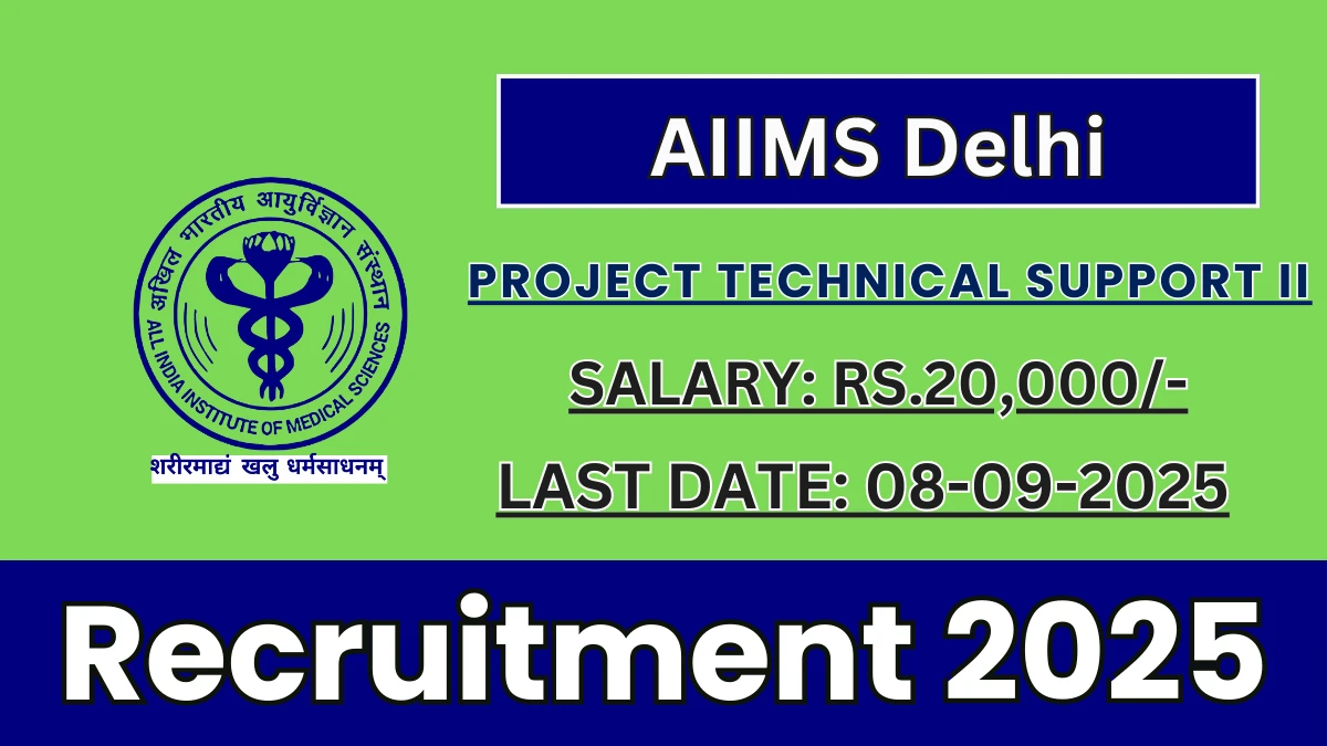 The All India Institute Of Medical Sciences Delhi (AIIMS Delhi) Recruitment 2025 for 01 posts of Project Technical Support II. Candidates with Diploma Can Apply Offline. The Offline application opens on 23-08-2025, and closes on 08-09-2025. The candidate shall apply Offline through AIIMS Delhi website, aiims.edu.