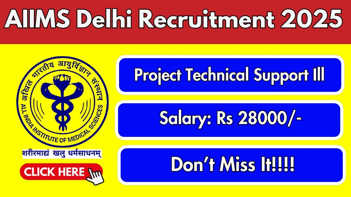 All India Institute Of Medical Sciences Delhi (AIIMS Delhi) has released an official notification for the recruitment of 01 Project Technical Support Ill Posts. Interested and eligible candidates can apply Online through the official AIIMS Delhi website. The last date to submit the application form is 22-10-2025. In this article, you’ll find the AIIMS Delhi Project Technical Support Ill Posts recruitment details, including eligibility criteria, age limit, salary structure, selection process, application steps, and direct links to the official notification and Online application form.