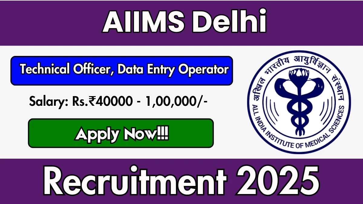 All India Institute Of Medical Sciences Delhi (AIIMS Delhi) has released an official notification for the recruitment of 02 Technical Officer, Data Entry Operator Posts. Interested and eligible candidates can apply Offline through the official AIIMS Delhi website. The last date to submit the application form is 14-10-2025. In this article, you’ll find the AIIMS Delhi Technical Officer, Data Entry Operator Posts recruitment details, including eligibility criteria, age limit, salary structure, selection process, application steps, and direct links to the official notification and Offline application form.