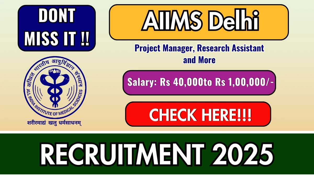 All India Institute Of Medical Sciences Delhi (AIIMS Delhi) has released an official notification for the recruitment of 04 Project Manager, Research Assistant and More Posts. Interested and eligible candidates can apply Offline through the official AIIMS Delhi website. The last date to submit the application form is 20-10-2025. In this article, you’ll find the AIIMS Delhi Project Manager, Research Assistant and More Posts recruitment details, including eligibility criteria, age limit, salary structure, selection process, application steps, and direct links to the official notification and Offline application form.