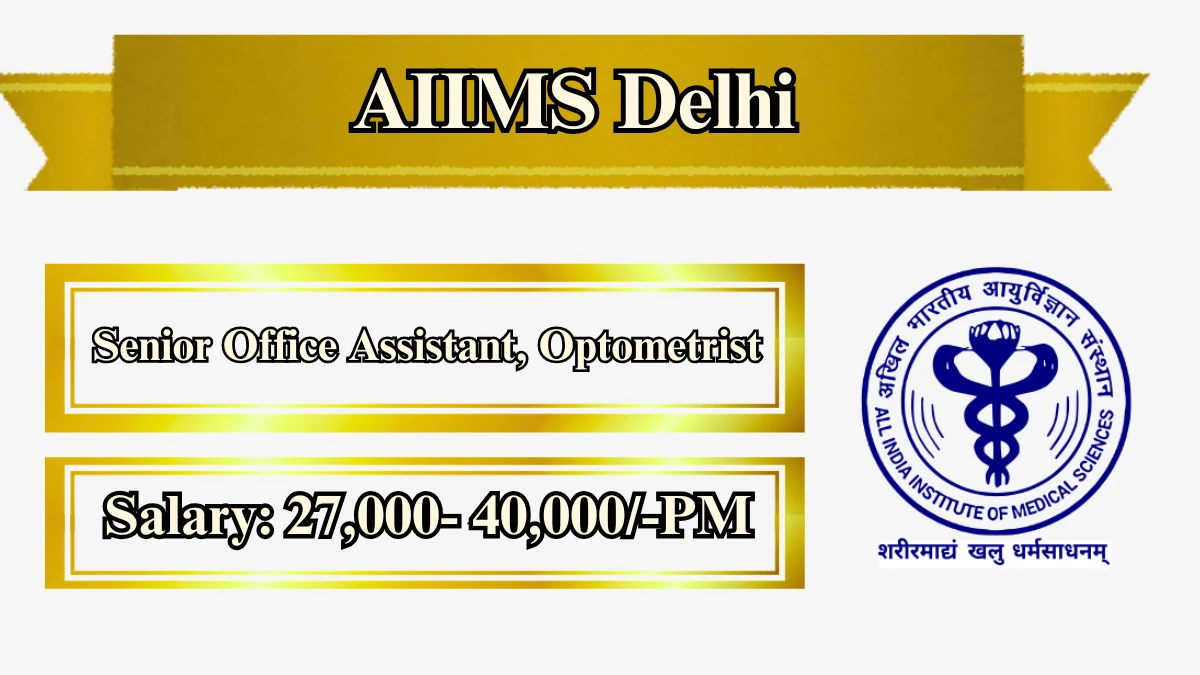 All India Institute of Medical Sciences Delhi Senior Office Assistant / Optometrist Notification 2026 has been released on the official website of AIIMS Delhi. A total of 2 vacancies have been announced through the AIIMS Delhi Senior Office Assistant / Optometrist Recruitment 2026.