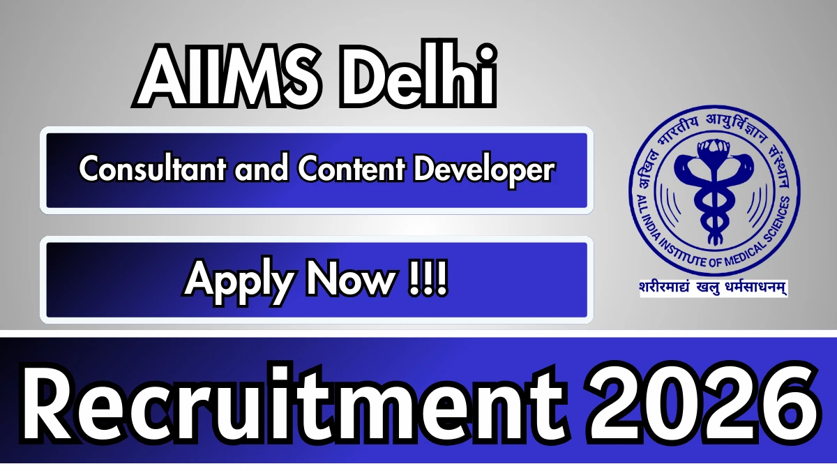 All India Institute of Medical Sciences Delhi (AIIMS Delhi) Recruitment 2026: All India Institute of Medical Sciences Delhi has released the official notification for 2 Consultant (Health Professional) & Content Developer posts, inviting applications from eligible candidates. This recruitment provides an excellent opportunity for candidates seeking research jobs.
