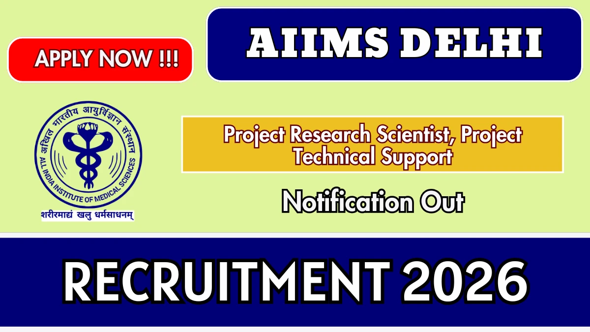 All India Institute of Medical Sciences Delhi (AIIMS Delhi) Recruitment 2026: All India Institute of Medical Sciences Delhi has released the official notification for Project Research Scientist, Project Technical Support posts, inviting applications from eligible candidates. This recruitment provides an excellent opportunity for candidates seeking research jobs.