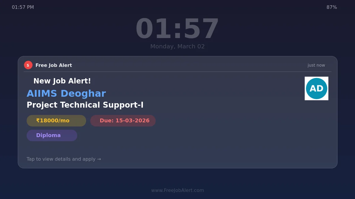 AIIMS Deoghar Project Technical Support-I Vacancy 2026 Notification PDF