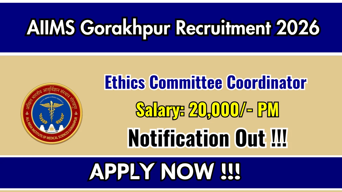 All India Institute of Medical Sciences Gorakhpur has announced a Walk-in Interview for 1 Ethics Committee Coordinator Post. Candidates with B.Sc / B.Pharm, Postgraduate Diploma in Clinical Research can attend the walk-in interview on 23-04-2026. The selection will be based on a Written Test (if required) and Interview.