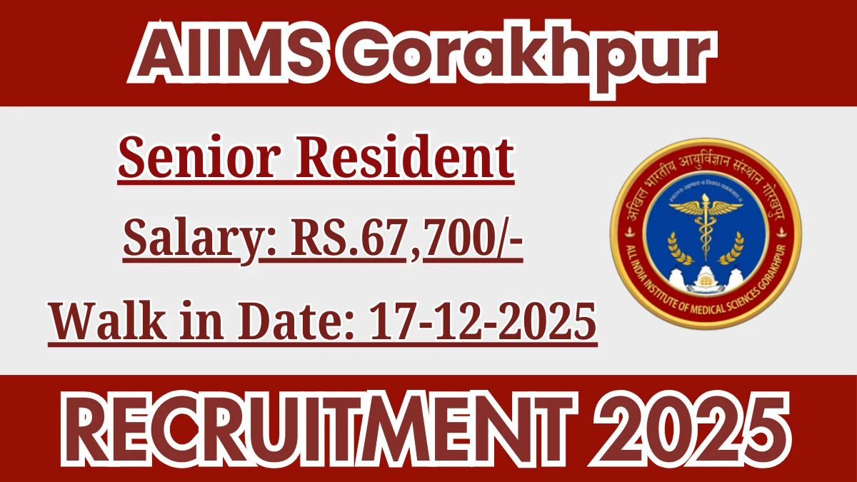 All India Institute of Medical Sciences Gorakhpur (AIIMS Gorakhpur) Recruitment 2025 for 57 posts of Senior Resident. Candidates with Any Post Graduate Can attend the walkin. The Walk-in on 17-12-2025. For detailed information please visit AIIMS Gorakhpur official website, aiimsgorakhpur.edu.in.