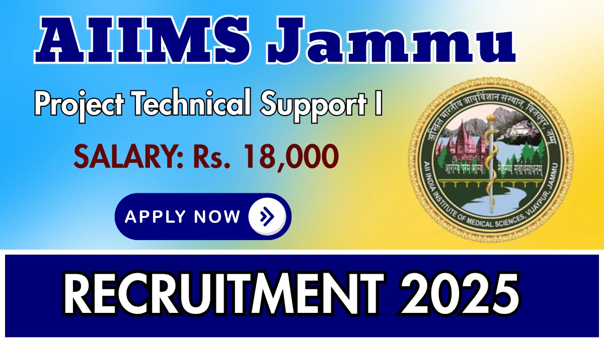 All India Institute of Medical Sciences Jammu (AIIMS Jammu) has released an official notification for the recruitment of 01 Project Technical Support I Posts. Interested and eligible candidates can apply Online through the official AIIMS Jammu website. The last date to submit the application form is 01-11-2025. In this article, you’ll find the AIIMS Jammu Project Technical Support I Posts recruitment details, including eligibility criteria, age limit, salary structure, selection process, application steps, and direct links to the official notification and Online application form.