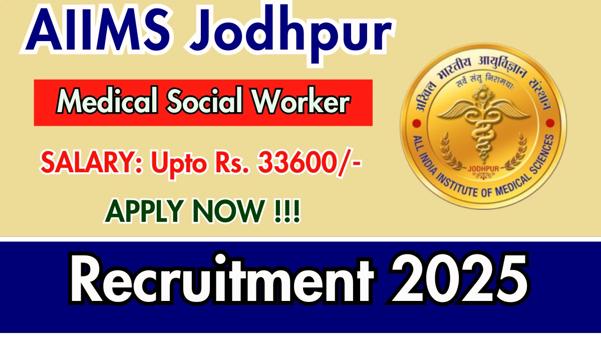 All India Institute of Medical Sciences Jodhpur (AIIMS Jodhpur) has released an official notification for the recruitment of 01 Medical Social Worker Posts. Interested and eligible candidates can apply Online through the official AIIMS Jodhpur website. The last date to submit the application form is 07-10-2025. In this article, you’ll find the AIIMS Jodhpur Medical Social Worker Posts recruitment details, including eligibility criteria, age limit, salary structure, selection process, application steps, and direct links to the official notification and Online application form.