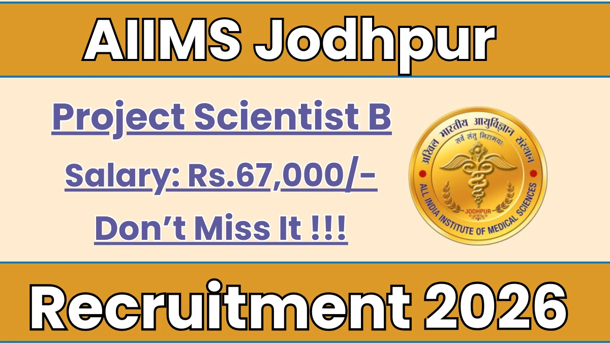 All India Institute of Medical Sciences Jodhpur (AIIMS Jodhpur) Recruitment 2026 for 01 posts of Project Scientist B. Candidates with BDS, MBBS, MPH Can attend the walkin. The Walk-in on 20-02-2026. For detailed information please visit AIIMS Jodhpur official website, https://www.aiimsjodhpur.edu.in.