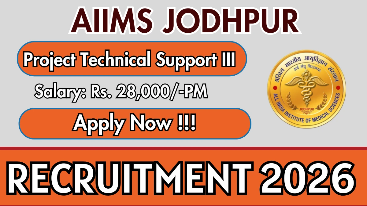 All India Institute of Medical Sciences Jodhpur (AIIMS Jodhpur) Recruitment 2026 for 02 posts of Project Technical Support III. Candidates with B.Sc, BOT Can attend the walkin. The Walk-in on 25-02-2026. For detailed information please visit AIIMS Jodhpur official website, aiimsjodhpur.edu.in.