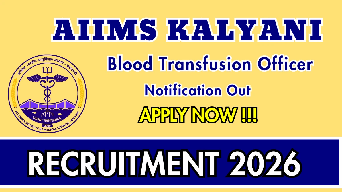 All India Institute of Medical Sciences Kalyani (AIIMS Kalyani) has released an official notification for the recruitment of 01 Blood Transfusion Officer Posts. Interested and eligible candidates can apply Online through the official AIIMS Kalyani website. The last date to submit the application form is 10-03-2026. In this article, you’ll find the AIIMS Kalyani Blood Transfusion Officer Posts recruitment details, including eligibility criteria, age limit, salary structure, selection process, application steps, and direct links to the official notification and Online application form.