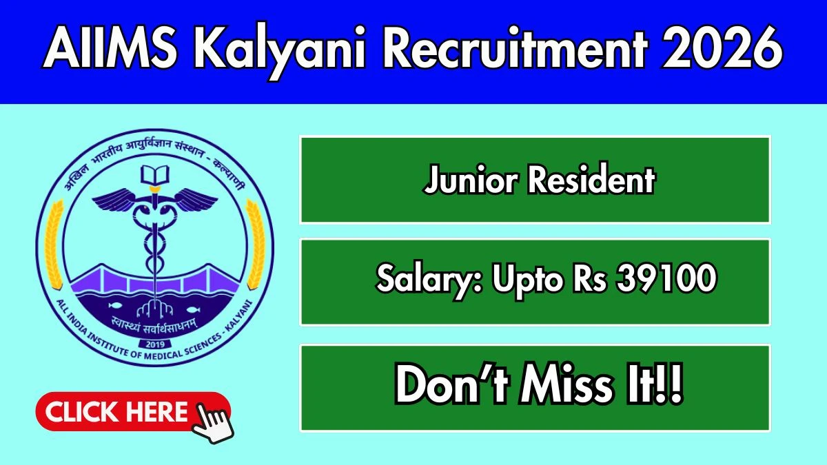 All India Institute of Medical Sciences (AIIMS) Kalyani has announced recruitment for 47 Junior Resident (Non-Academic) posts on a tenure basis of six months. Eligible candidates with an MBBS degree from a recognized institution and completed internship can attend the walk-in interview on 4 February 2026 at AIIMS Kalyani, West Bengal. The position offers a pay scale of ₹15,600–39,100 + GP ₹5,400 (Level 10 of 7th CPC) plus NPA as per rules.