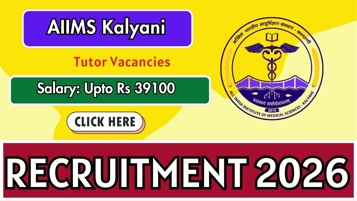 All India Institute of Medical Sciences Kalyani (AIIMS Kalyani) Recruitment 2026 for 03 posts of Tutor. Candidates with MBBS, M.Sc Can attend the walkin. The Walk-in interview on 03-02-2026. For detailed information please visit AIIMS Kalyani official website,aiimskalyani.edu.in.