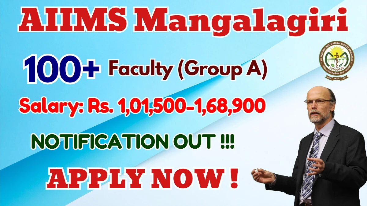 All India Institute of Medical Sciences Mangalagiri (AIIMS Mangalagiri) has released an official notification for the recruitment of 121 Faculty (Group A) Posts. Interested and eligible candidates can apply Online through the official AIIMS Mangalagiri website. The last date to submit the application form is 26-10-2025. In this article, you’ll find the AIIMS Mangalagiri Faculty (Group A) Posts recruitment details, including eligibility criteria, age limit, salary structure, selection process, application steps, and direct links to the official notification and Online application form.