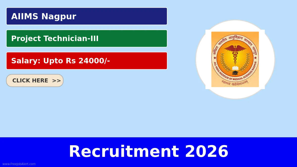 Candidates who meet the eligibility criteria can apply online for the AIIMS Nagpur Project Technician-III Recruitment 2026.