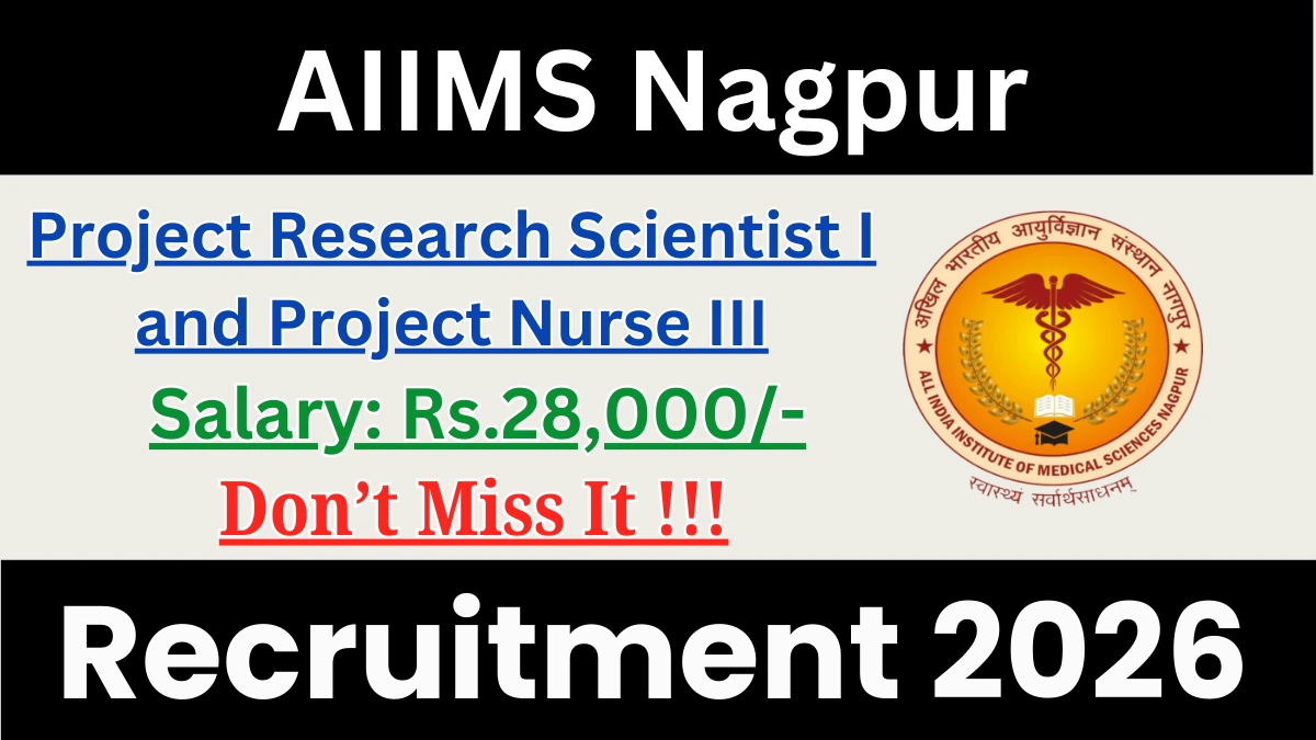 All India Institute of Medical Sciences, Nagpur (AIIMS Nagpur) Recruitment 2026: All India Institute of Medical Sciences, Nagpur has released the official notification for 4 Project Research Scientist - I and Project Nurse – III posts, inviting applications from eligible candidates in Maharashtra. This recruitment provides an excellent opportunity for candidates seeking stable and well-paid healthcare jobs.