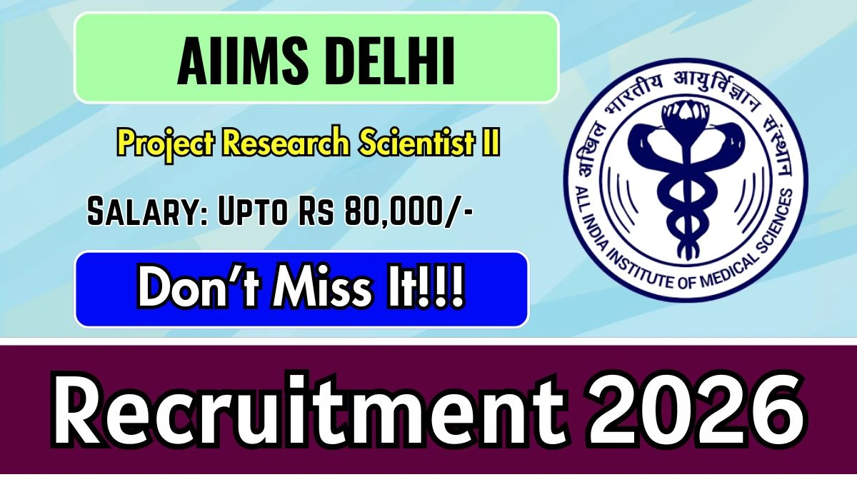 All India Institute of Medical Sciences, New Delhi (AIIMS New Delhi) Recruitment 2026: All India Institute of Medical Sciences, New Delhi has released the official notification for 1 Project Research Scientist II (Non-medical) posts, inviting applications from eligible candidates. This recruitment provides an excellent opportunity for candidates seeking government jobs.