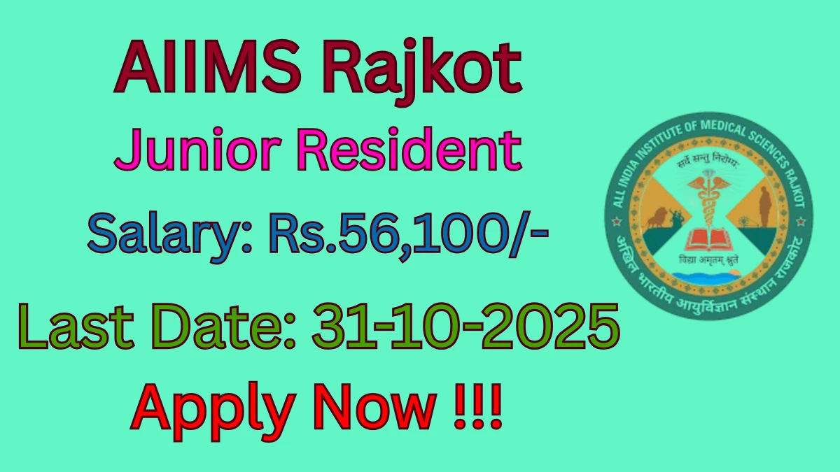 All India Institute of Medical Sciences Rajkot (AIIMS Rajkot) has released an official notification for the recruitment of 26 Junior Resident Posts. Interested and eligible candidates can apply Online through the official AIIMS Rajkot website. The last date to submit the application form is 31-10-2025. In this article, you’ll find the AIIMS Rajkot Junior Resident Posts recruitment details, including eligibility criteria, age limit, salary structure, selection process, application steps, and direct links to the official notification and Online application form.