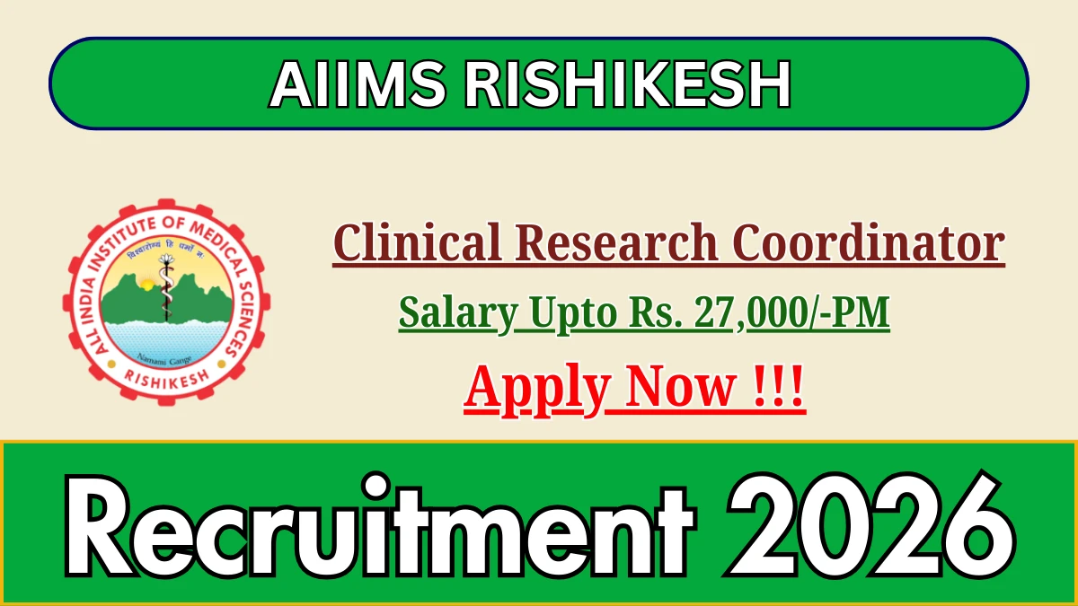 All India Institute of Medical Sciences, Rishikesh has released the Clinical Research Coordinator Recruitment 2026 notification for 1 contractual post, offering an opportunity for candidates with a background in Life Sciences, Pharmacy, Nursing, or Biotechnology to work in clinical trials and research projects.