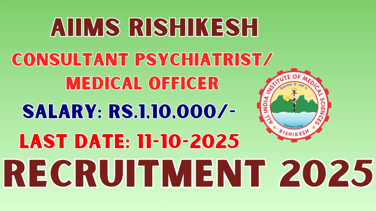 All India Institute of Medical Sciences Rishikesh (AIIMS Rishikesh) has released an official notification for the recruitment of 01 Consultant Psychiatrist/ Medical Officer Posts. Interested and eligible candidates can apply Offline through the official AIIMS Rishikesh website. The last date to submit the application form is 11-10-2025. In this article, you’ll find the AIIMS Rishikesh Consultant Psychiatrist/ Medical Officer Posts recruitment details, including eligibility criteria, age limit, salary structure, selection process, application steps, and direct links to the official notification and Offline application form.