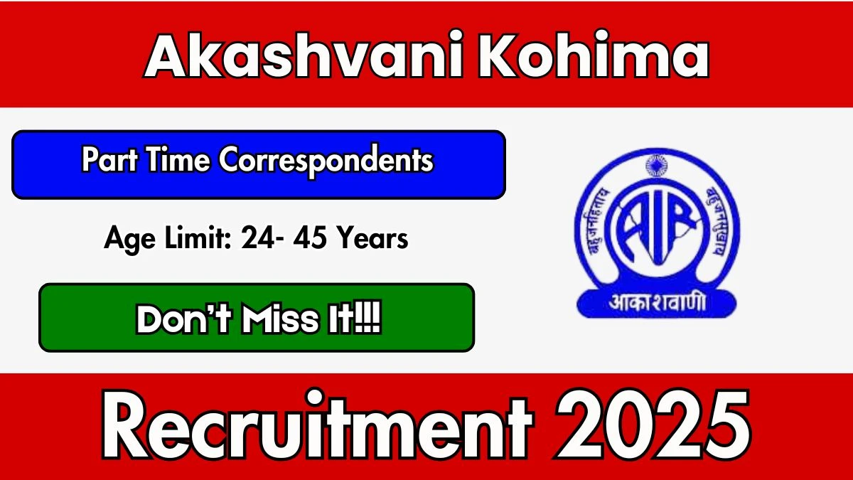 The Akashvani Kohima Recruitment 2025 for posts of Part Time Correspondents. Candidates with M.A, PG Diploma Can Apply Offline. The Offline application opens on 19-12-2025, and closes on 03-01-2026. The candidate shall apply Offline through Akashvani Kohima website, newsonair.gov.in.