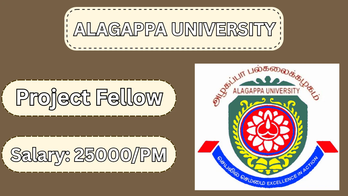 Alagappa University has released 01 Project Fellow vacancies. Eligible candidates with M.Sc can apply online Application Closes On December 31,2025, at alagappauniversity.ac.in