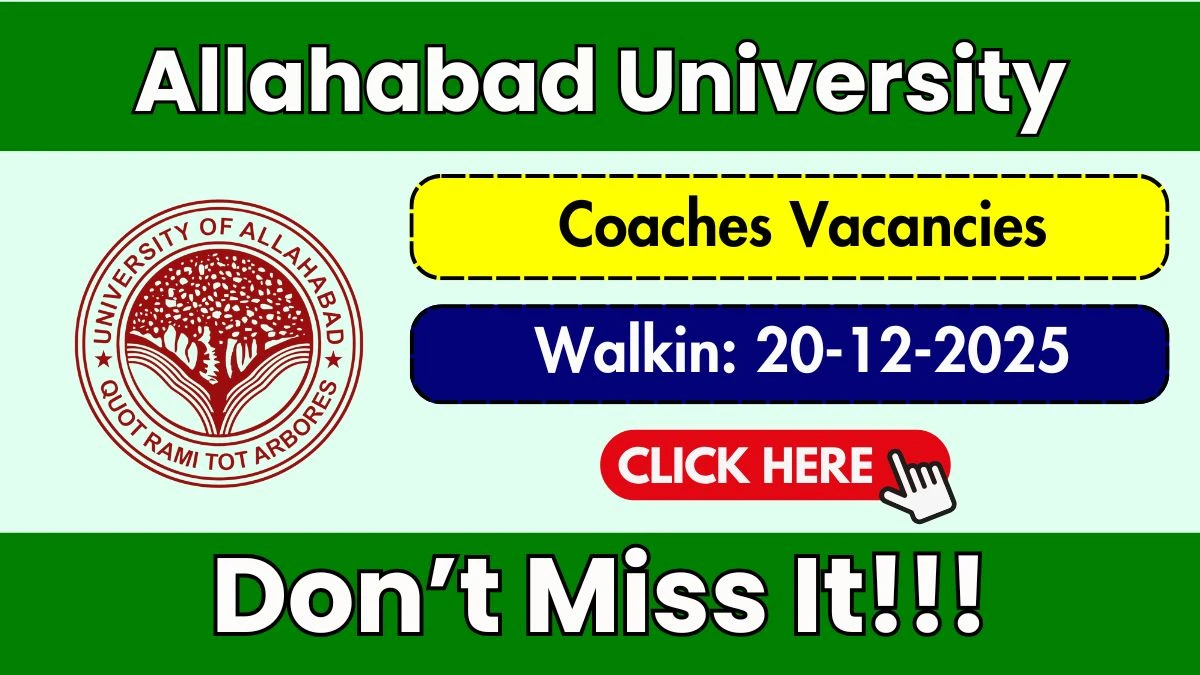 Allahabad University Recruitment 2025 for 06 posts of Coaches. Candidates with Any Graduate, Diploma Can attend the walkin. The Walk-in interview on 20-12-2025. For detailed information please visit Allahabad University official website, allduniv.ac.in.