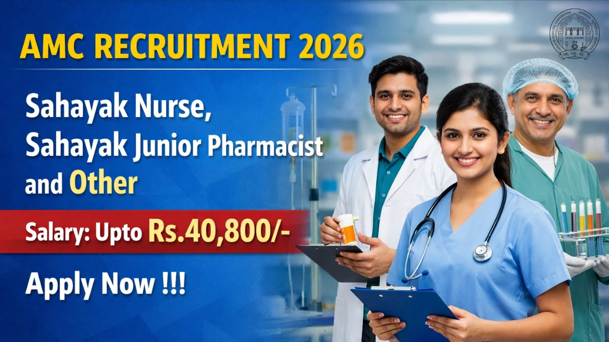 Ahmedabad Municipal Corporation (AMC) has released an official notification for the recruitment of 30 Sahayak Nurse, Sahayak Junior Pharmacist and Other Posts. Interested and eligible candidates can apply Online through the official AMC website. The last date to submit the application form is 10-03-2026. In this article, you’ll find the AMC Sahayak Nurse, Sahayak Junior Pharmacist and Other Posts recruitment details, including eligibility criteria, age limit, salary structure, selection process, application steps, and direct links to the official notification and Online application form.