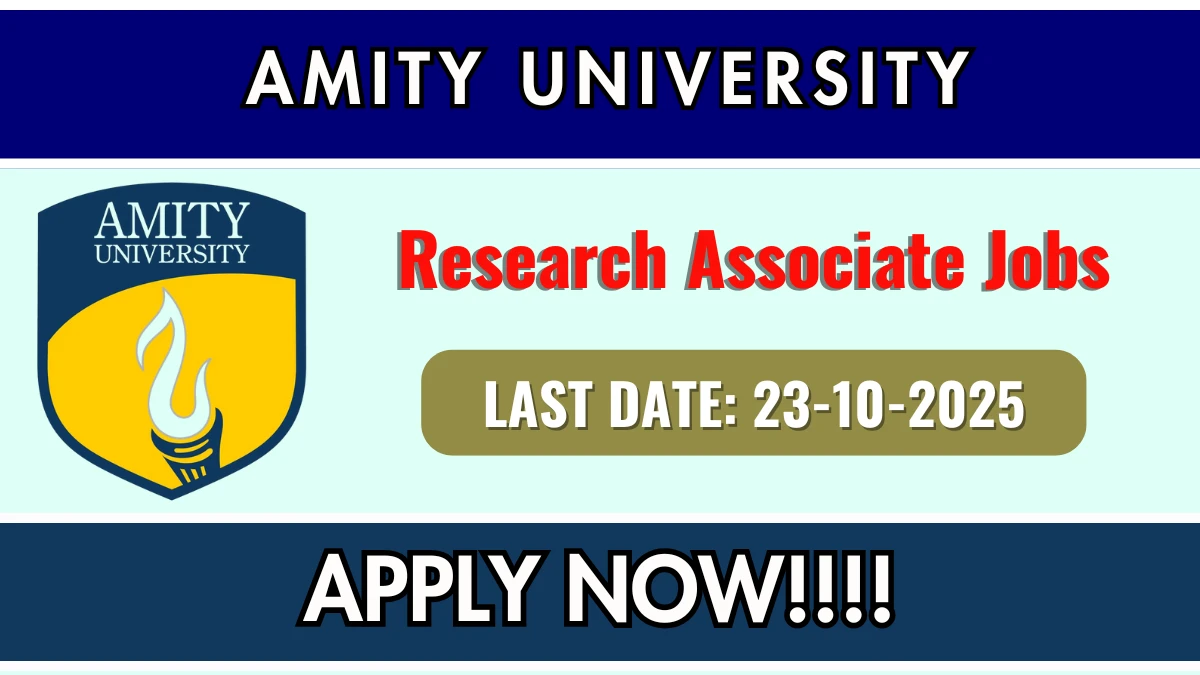 Amity University has released an official notification for the recruitment of 01 Research Associate Posts. Interested and eligible candidates can apply Online through the official Amity University website. The last date to submit the application form is 23-10-2025. In this article, you’ll find the Amity University Research Associate Posts recruitment details, including eligibility criteria, age limit, salary structure, selection process, application steps, and direct links to the official notification and Online application form.