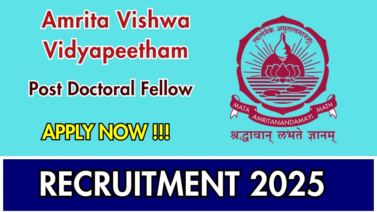 Amrita Vishwa Vidyapeetham has released an official notification for the recruitment of 01 Post Doctoral Fellow Posts. Interested and eligible candidates can apply Online through the official Amrita Vishwa Vidyapeetham website. The last date to submit the application form is 10-10-2025. In this article, you’ll find the Amrita Vishwa Vidyapeetham Post Doctoral Fellow Posts recruitment details, including eligibility criteria, age limit, salary structure, selection process, application steps, and direct links to the official notification and Online application form.