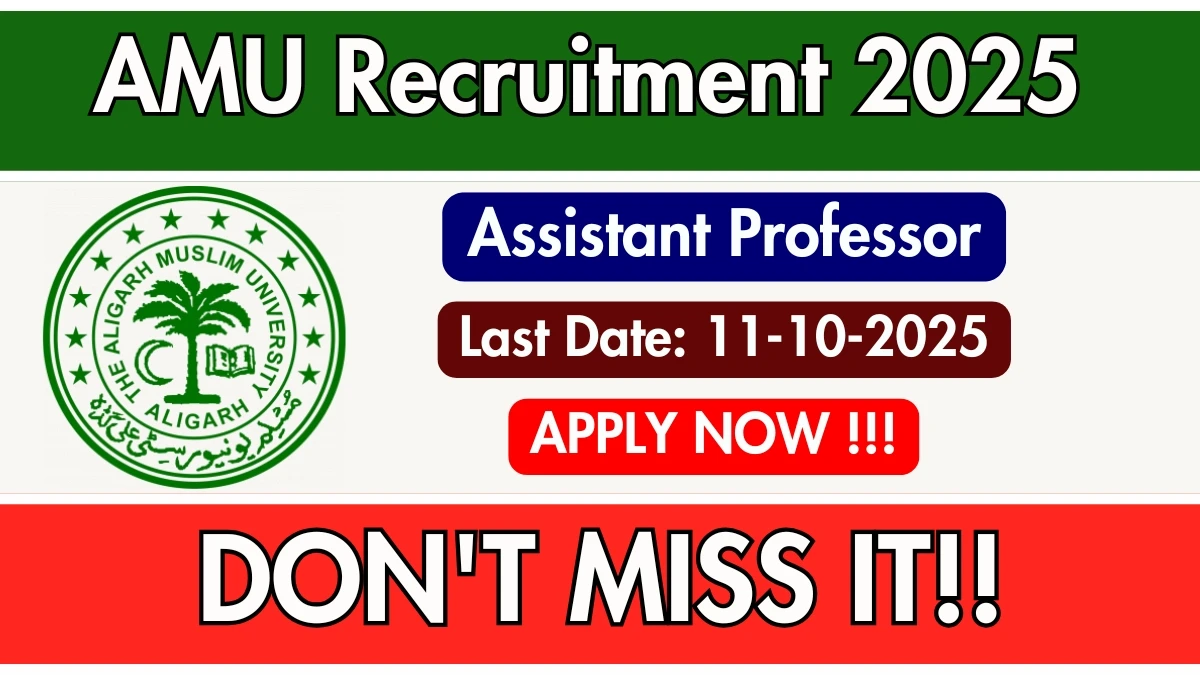 Aligarh Muslim University (AMU) has released an official notification for the recruitment of 03 Assistant Professor Posts. Interested and eligible candidates can apply Online through the official AMU website. The last date to submit the application form is 11-10-2025. In this article, you’ll find the AMU Assistant Professor Posts recruitment details, including eligibility criteria, age limit, salary structure, selection process, application steps, and direct links to the official notification and Online application form.
