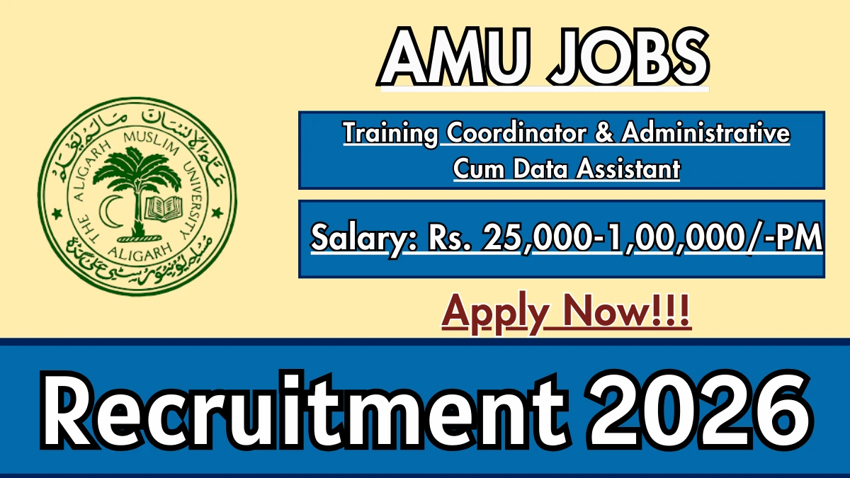 Aligarh Muslim University (AMU) has officially released a notification for the recruitment of 2 Training Coordinator & Administrative Cum Data Assistant Posts. This recruitment drive offers a great opportunity for candidates looking for government jobs. Interested and eligible candidates can download the application form from the official website and submit it offline.