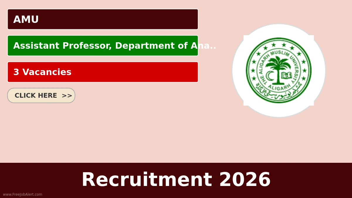 Aligarh Muslim University (AMU) Recruitment 2026: Aligarh Muslim University has released the official notification for 3 Teaching posts, inviting applications from eligible candidates in Uttar Pradesh. This recruitment provides an excellent opportunity for candidates seeking stable and well-paid education jobs.