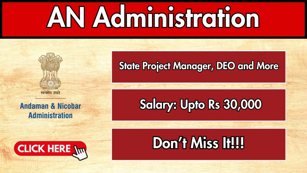 Andaman & Nicobar Administration Recruitment 2026: Andaman & Nicobar Administration has released the official notification for 3 State Project Manager (Financial Management), Cluster Coordinator, Data Entry Operator posts, inviting applications from eligible candidates. This recruitment provides an excellent opportunity for candidates seeking stable and well-paid government jobs.