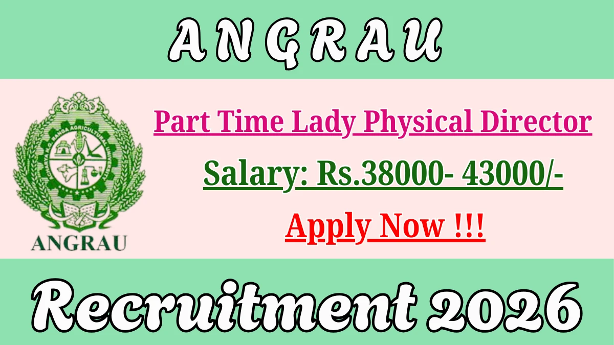 Acharya N G Ranga Agricultural University (ANGRAU) Recruitment 2026 for 01 posts of Part Time Lady Physical Director. Candidates with M.Phil/Ph.D, M.P.Ed Can attend the walkin. The Walk-in on 03-02-2026. For detailed information please visit ANGRAU official website, angrau.ac.in.