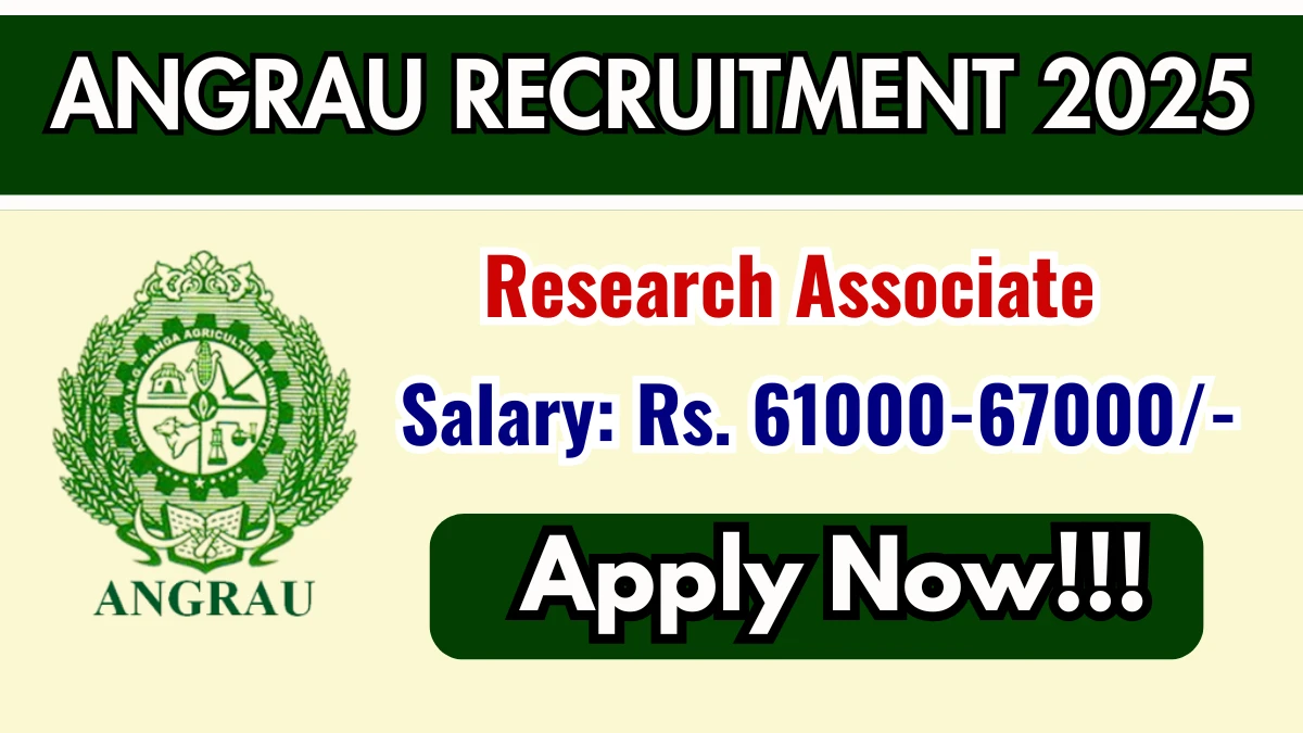 Acharya NG Ranga Agricultural University (ANGRAU) Recruitment 2025 for 01 posts of Research Associate. Candidates with Any Bachelors Degree, Any Masters Degree, M.Phil/Ph.D Can attend the walkin. The Walk-in on 11-12-2025. For detailed information please visit ANGRAU official website, angrau.ac.in.