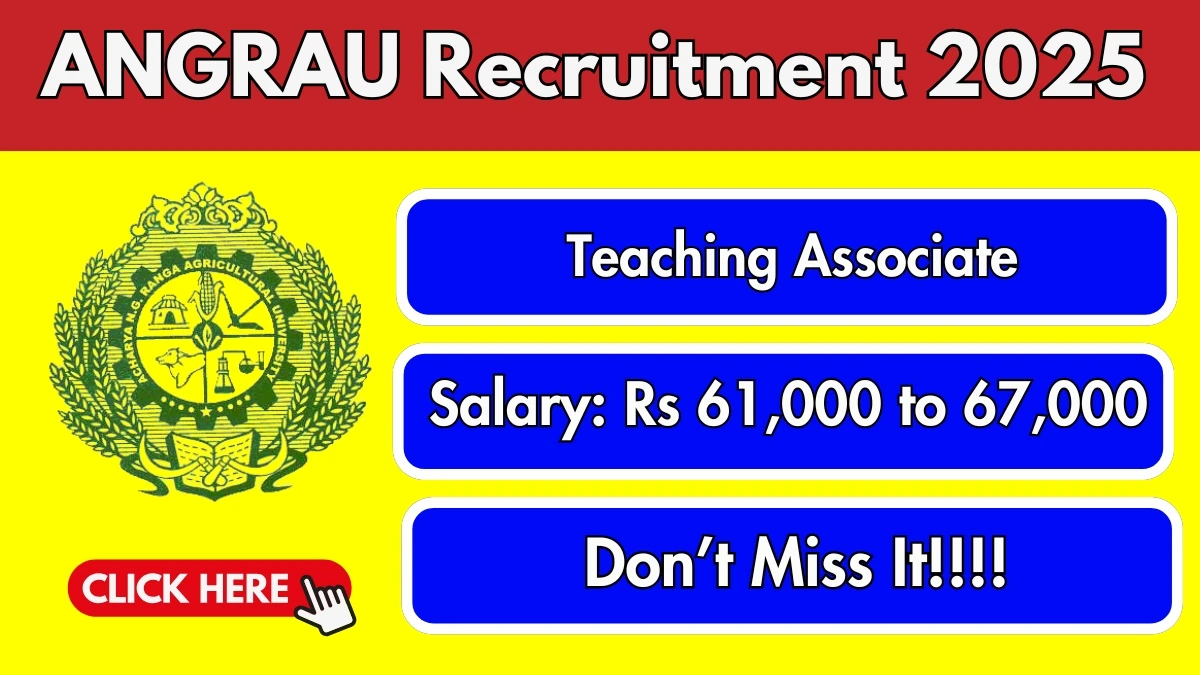 Acharya NG Ranga Agricultural University (ANGRAU) Recruitment 2025 for 02 posts of Teaching Associate. Candidates with Any Bachelors Degree, Any Masters Degree, M.Phil/Ph.D Can attend the walkin. The Walk-in on 22-10-2025. For detailed information please visit ANGRAU official website, angrau.ac.in.
