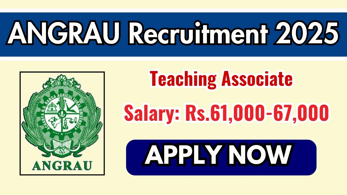Acharya NG Ranga Agricultural University (ANGRAU) Recruitment 2025 for 01 posts of Teaching Associate. Candidates with Any Masters Degree, M.Sc, M.Phil/Ph.D Can attend the walkin. The Walk-in on 08-10-2025. For detailed information please visit ANGRAU official website, angrau.ac.in.
