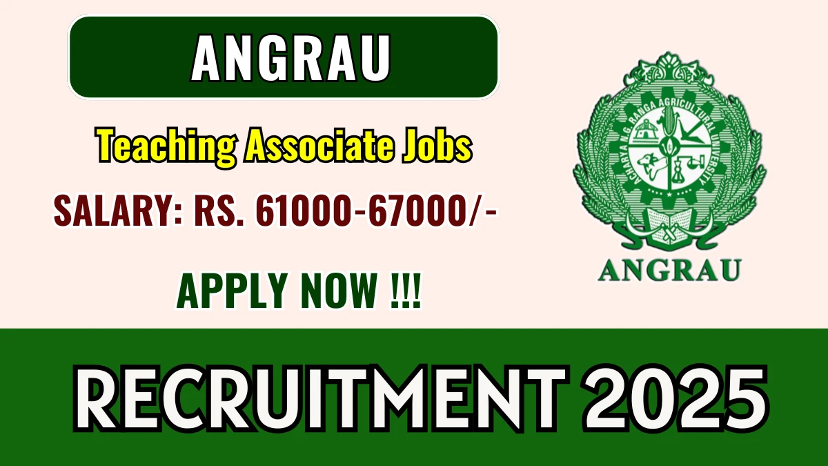 Acharya NG Ranga Agricultural University (ANGRAU) Recruitment 2025 for 01 posts of Teaching Associate. Candidates with Any Bachelors Degree, M.Sc, M.Phil/Ph.D Can attend the walkin. The Walk-in on 16-10-2025. For detailed information please visit ANGRAU official website, angrau.ac.in.