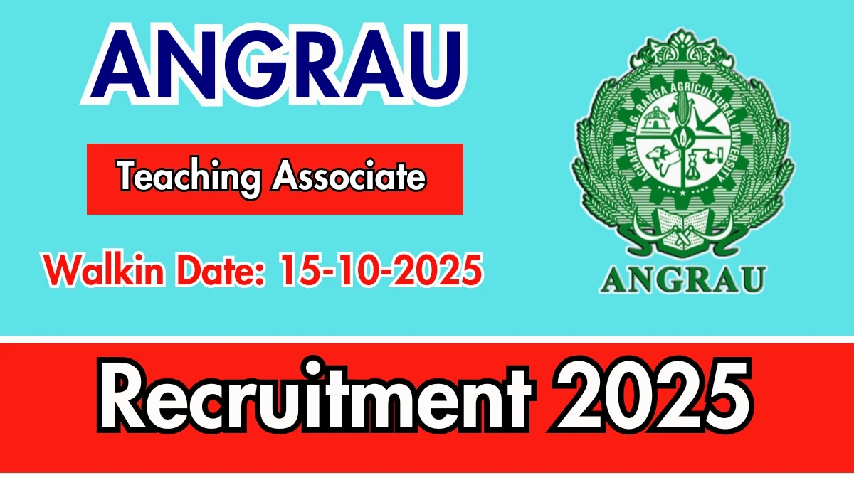 Acharya NG Ranga Agricultural University (ANGRAU) Recruitment 2025 for 01 posts of Teaching Associate. Candidates with Any Graduate, Any Masters Degree, M.Phil/Ph.D Can attend the walkin. The Walk-in on 15-10-2025. For detailed information please visit ANGRAU official website, angrau.ac.in.