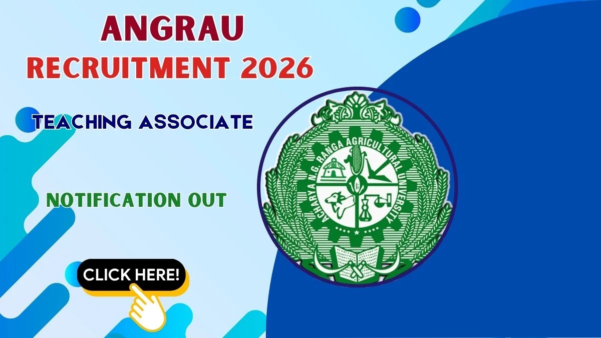 Acharya N.G. Ranga Agricultural University (ANGRAU) has officially announced a Walk-in Interview for the recruitment of 1 Teaching Associate Posts. This walk-in drive offers a great opportunity for candidates looking for government jobs. Candidates with Ph.D. or Master's degree in Agronomy with 3 years teaching/research experience, Bachelor's Degree (4/5 years) in Agriculture with first division or equivalent OGPA, One published research paper in SCI/NAAS rated journal (>=4.0) qualification can directly attend the interview on 26 March 2026.