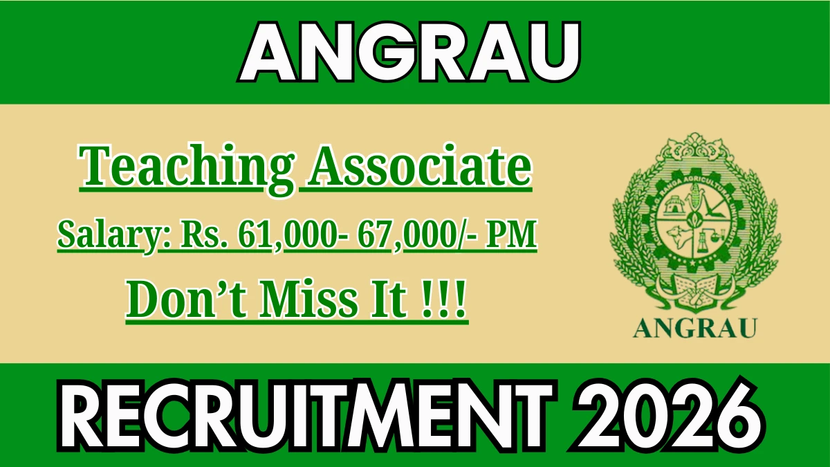 Acharya N G Ranga Agricultural University (ANGRAU) has officially announced a Walk-in Interview for the recruitment of 1 Teaching Associate Posts. This walk-in drive offers a great opportunity for candidates looking for government jobs. Candidates with Ph.D. or Master's degree in relevant subject with at least 3 years teaching/research experience, Bachelor's Degree of 4/5 years in Agriculture with first division or equivalent CGPA, Published one research paper in SCI/NAAS rated (≥4.0) Journal qualification can directly attend the interview on 10-03-2026.