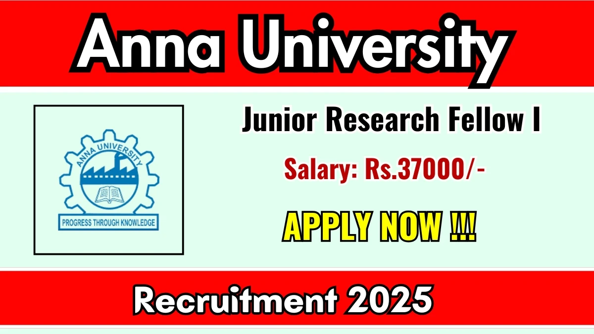Anna University has released an official notification for the recruitment of 01 Junior Research Fellow I Posts. Interested and eligible candidates can apply Offline through the official Anna University website. The last date to submit the application form is 21-10-2025. In this article, you’ll find the Anna University Junior Research Fellow I Posts recruitment details, including eligibility criteria, age limit, salary structure, selection process, application steps, and direct links to the official notification and Offline application form.