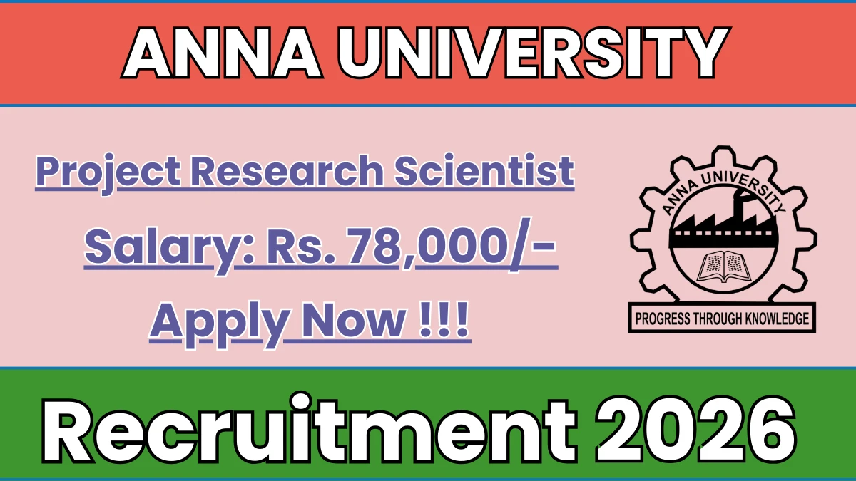 Anna University has released an official notification for the recruitment of 01 Project Research Scientist Posts. Interested and eligible candidates can apply Offline through the official Anna University website. The last date to submit the application form is 10-02-2026. In this article, you’ll find the Anna University Project Research Scientist Posts recruitment details, including eligibility criteria, age limit, salary structure, selection process, application steps, and direct links to the official notification and Offline application form.