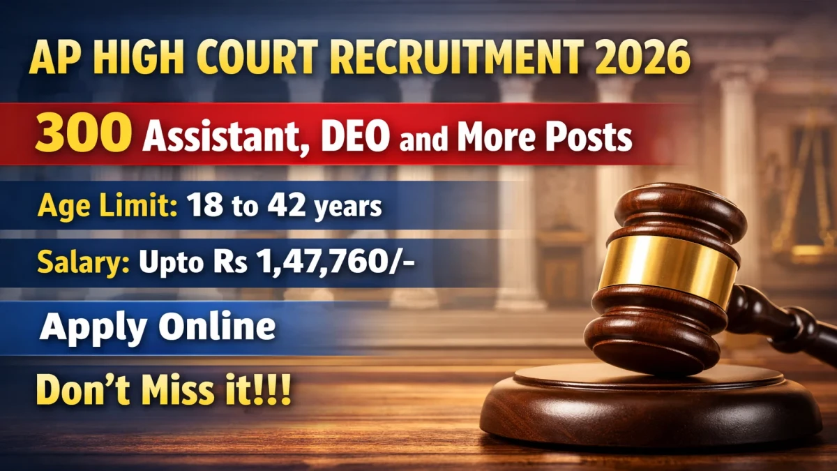 Andhra Pradesh High Court (APHC) has released a new recruitment notification for 300 posts including Section Officer, Senior System Officer, Computer Operator, Assistant, Typist, Data Entry Operator and Office Subordinate, with online applications open from 30th March to 19th April 2026 at aphc.gov.in.