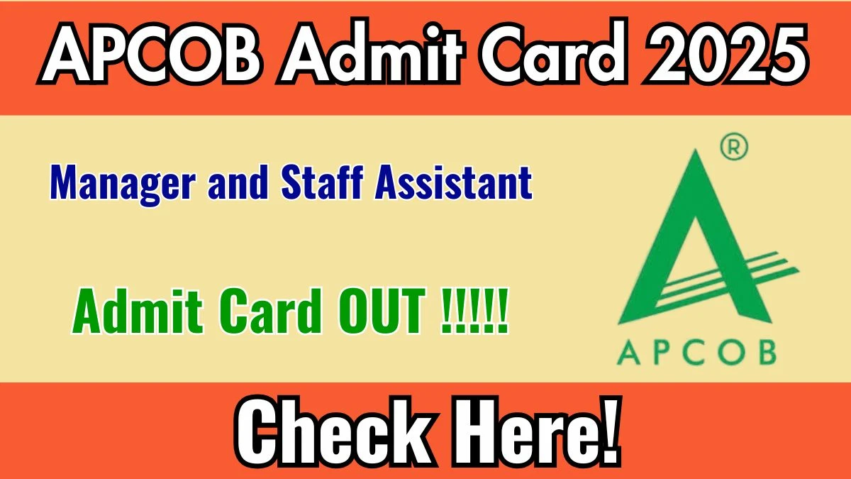 Download APCOB Manager, Staff Assistant Admit Card 2025 now! Get direct link, step-by-step process, and important exam details. Visit apcob.org to download.