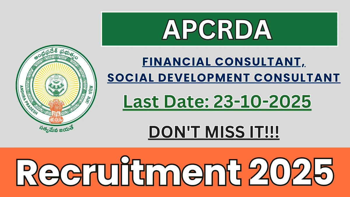 Andhra Pradesh Capital Region Development Authority (APCRDA) has released an official notification for the recruitment of 02 Financial Consultant, Social Development Consultant Posts. Interested and eligible candidates can apply Online through the official APCRDA website. The last date to submit the application form is 23-10-2025. In this article, you’ll find the APCRDA Financial Consultant, Social Development Consultant Posts recruitment details, including eligibility criteria, age limit, salary structure, selection process, application steps, and direct links to the official notification and Online application form.