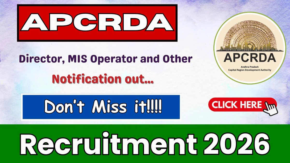 Andhra Pradesh Capital Region Development Authority (APCRDA) has released an official notification for the recruitment of 04 Director, MIS Operator and Other Posts. Interested and eligible candidates can apply Online through the official APCRDA website. The last date to submit the application form is 02-03-2026. In this article, you’ll find the APCRDA Director, MIS Operator and Other Posts recruitment details, including eligibility criteria, age limit, salary structure, selection process, application steps, and direct links to the official notification and Online application form.