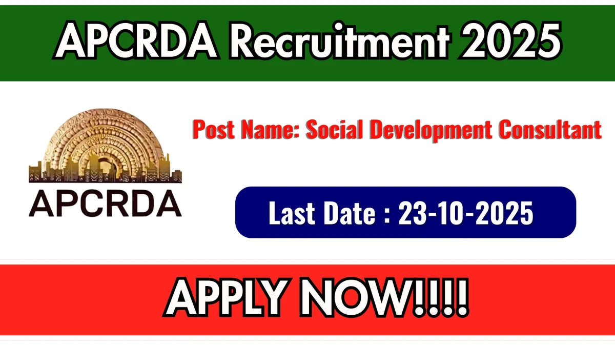 Andhra Pradesh Capital Region Development Authority (APCRDA) has released an official notification for the recruitment of 01 Social Development Consultant Posts. Interested and eligible candidates can apply Online through the official APCRDA website. The last date to submit the application form is 23-10-2025. In this article, you’ll find the APCRDA Social Development Consultant Posts recruitment details, including eligibility criteria, age limit, salary structure, selection process, application steps, and direct links to the official notification and Online application form.