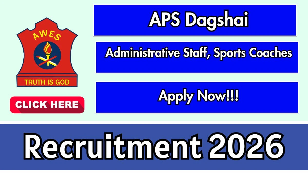Army Public School Dagshai has released an official notification for the recruitment of 19 Administrative Staff, Sports Coaches Posts. Interested and eligible candidates can apply Offline through the official APS Dagshai website. The last date to submit the application form is 20-02-2026. In this article, you’ll find the APS Dagshai Administrative Staff, Sports Coaches Posts recruitment details, including eligibility criteria, age limit, salary structure, selection process, application steps, and direct links to the official notification and Offline application form.